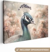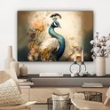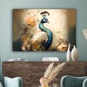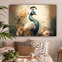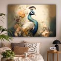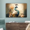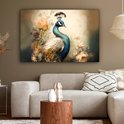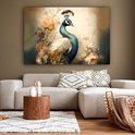 Peinture sur toile Paon - Plumes de paon - Fleurs - Vogels - Botanique - 150x100 cm - Décoration murale