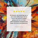 La photo est imprimée sur une toile robuste de 260 grammes de 0,41 mm d'épaisseur. Le lin est tendu étroitement sur un cadre en bois de deux centimètres d'épaisseur. Ce cadre en bois est en bois de pin certifié PEFC de qualité. Un système de suspension peut être commandé en option avec le produit pour fixer facilement l'impression au mur.