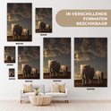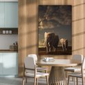 Peintures sur toile - Éléphants - Coucher de soleil - Horizon - Animaux sauvages - Animal - Salon - Chambre