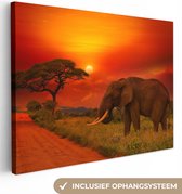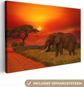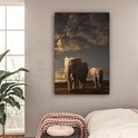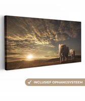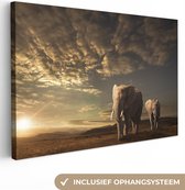 Peinture sur toile - Photo sur toile - Éléphant - Soleil - Nuages - Paysage - Animaux - Décoration murale - 90x140 cm - Tableaux sur toile salon