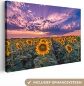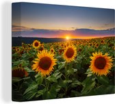 Complétez votre intérieur avec une peinture sur toile OneMillionCanvasses! Sur cette toile, vous pouvez voir des tournesols apaisants lors d'un coucher de soleil.