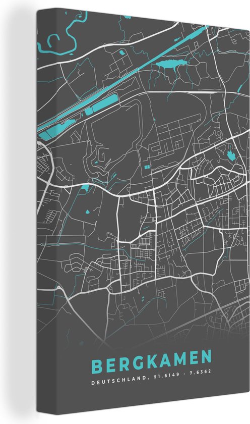 Peinture sur Toile Plan de Ville – Carte – Allemagne – Blauw – Bergkamen – Carte - 40x60 cm - Décoration murale