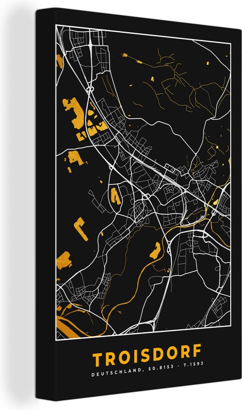 Peinture sur Toile Plan de Ville – Carte – Allemagne – Or – Troisdorf – Carte - 80x120 cm - Décoration murale