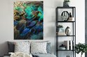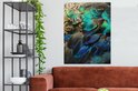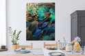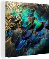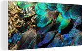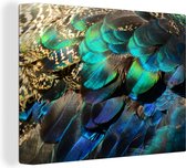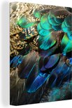 Peinture sur Toile Ressorts - Plumes de Paon - Paon - Blauw - Art - 90x120 cm - Décoration murale