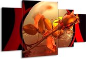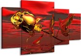 Peinture sur toile Rose | Rouge, or, jaune | 160x90cm 4 Liège. Cette peinture sur toile fait partie de la collection GroepArt et c'est un moyen simple et rapide de transformer complètement n'importe quel mur! Nos peintures sur toile contiennent de belles images imprimées sur du matériel en toile, tendues sur un cadre en bois. Cette peinture est disponible en 45 tailles sur notre site Internet. Personnalisation possible! Cette peinture sur toile mesure. Incl. jeu de suspension (à confirmer par vous-même). Le paquet contient 4 panneaux de peinture, manuels, suspendus, protégés par du papier bulle, emballés dans une boîte solide.