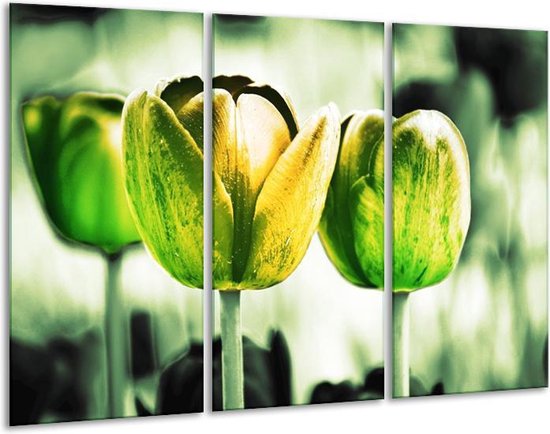 Peinture sur toile Tulipe | Jaune, vert, blanc | 120x80cm 3 Liège. Cette peinture sur toile fait partie de la collection GroepArt et c'est un moyen simple et rapide de transformer complètement n'importe quel mur! Nos peintures sur toile contiennent de belles images imprimées sur du matériel en toile, tendues sur un cadre en bois. Cette peinture est disponible en 45 tailles sur notre site Internet. Personnalisation possible! Cette peinture sur toile mesure. Incl. jeu de suspension (à confirmer par vous-même). Le paquet contient 3 panneaux de peinture, manuel, ensemble de suspension, protégé par du papier bulle, emballé dans une boîte solide.