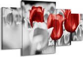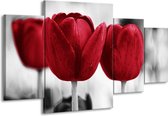 Peinture sur toile Tulipe | Rouge, blanc, gris | 160x90cm 4 Liège. Cette peinture sur toile fait partie de la collection GroepArt et c'est un moyen simple et rapide de transformer complètement n'importe quel mur! Nos peintures sur toile contiennent de belles images imprimées sur du matériel en toile, tendues sur un cadre en bois. Cette peinture est disponible en 45 tailles sur notre site Internet. Personnalisation possible! Cette peinture sur toile mesure. Incl. jeu de suspension (à confirmer par vous-même). Le paquet contient 4 panneaux de peinture, manuels, suspendus, protégés par du papier bulle, emballés dans une boîte solide.