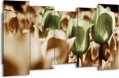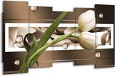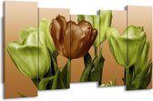 Peinture sur toile Tulipe | Vert, blanc, marron | 150x80cm 5Liège. Cette peinture sur toile fait partie de la collection GroepArt et c'est un moyen simple et rapide de transformer complètement n'importe quel mur! Nos peintures sur toile contiennent de belles images imprimées sur du matériel en toile, tendues sur un cadre en bois. Cette peinture est disponible en 45 tailles sur notre site Internet. Personnalisation possible! Cette peinture sur toile mesure. Incl. jeu de suspension (à confirmer par vous-même). Le paquet contient 5 panneaux de peinture, manuel, jeu de suspension, protégé par du papier bulle, emballé dans une boîte solide.