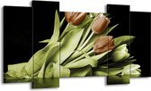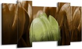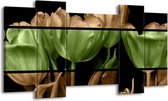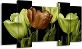 Peinture sur toile Tulipe | Vert, marron, noir | 120x65 5Liège. Cette peinture sur toile fait partie de la collection GroepArt et c'est un moyen simple et rapide de transformer complètement n'importe quel mur! Nos peintures sur toile contiennent de belles images imprimées sur du matériel en toile, tendues sur un cadre en bois. Cette peinture est disponible en 45 tailles sur notre site Internet. Personnalisation possible! Cette peinture sur toile mesure. Incl. jeu de suspension (à confirmer par vous-même). Le paquet contient 5 panneaux de peinture, manuel, jeu de suspension, protégé par du papier bulle, emballé dans une boîte solide.