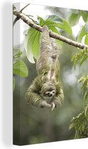 Peinture sur toile Un paresseux accroché dans les arbres à l'envers - 20x20 cm - Art Décoration murale