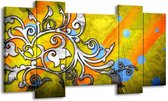 Peinture sur toile Villes | Jaune, bleu, vert | 120x65 5Liège. Cette peinture sur toile fait partie de la collection GroepArt et c'est un moyen simple et rapide de transformer complètement n'importe quel mur! Nos peintures sur toile contiennent de belles images imprimées sur du matériel en toile, tendues sur un cadre en bois. Cette peinture est disponible en 45 tailles sur notre site Internet. Personnalisation possible! Cette peinture sur toile mesure. Incl. jeu de suspension (à confirmer par vous-même). Le paquet contient 5 panneaux de peinture, manuel, jeu de suspension, protégé par du papier bulle, emballé dans une boîte solide.
