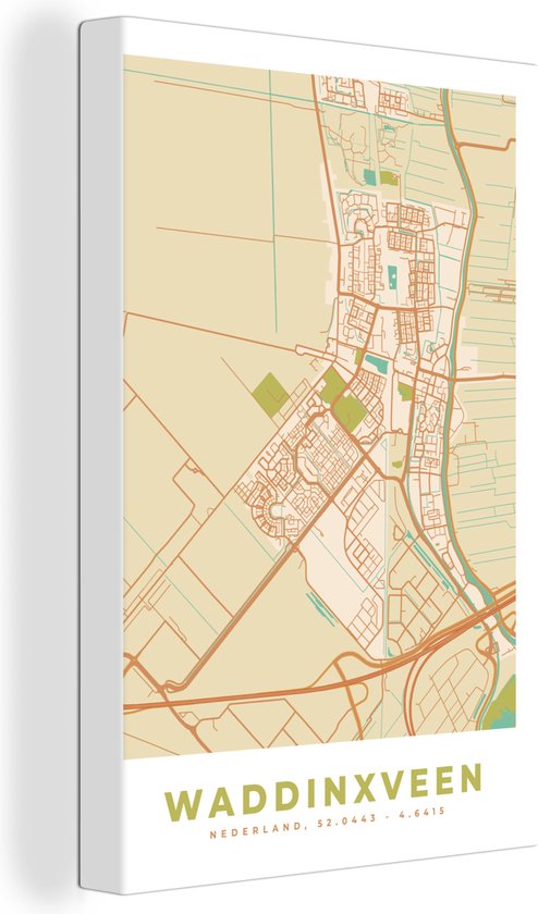 Peinture sur toile Waddinxveen - Plan de la ville - Carte - Plan d'étage - Vintage - 60x90 cm - Décoration murale