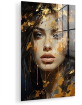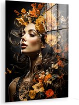 Peinture sur verre 60x90 cm - Femme fleurs - Photo sur verre - Tableau salon portrait - Tableaux plexiglas chambre - Décoration chambre plaque de verre - Décoration murale peintures sur verre - Décoration murale colorée