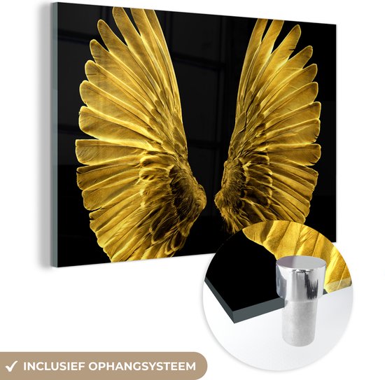 Peinture sur Verre - Ailes Dorées sur Fond Noir - 120x80 cm - Peintures sur Verre Peintures - Photo sur Glas