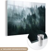 MuchoWow® Peinture sur verre 150x100 cm - Peinture sur verre acrylique - Brouillard - Arbres - Forêt - Photo sur verre - Peintures