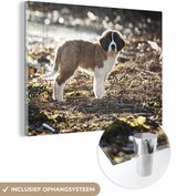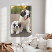 Tableau sur Verre - Chiots Saint Bernard Witte dans la Rue - 60x90 cm - Peintures sur Verre Peintures - Photo sur Glas