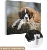 MuchoWow® Peinture sur verre 120x90 cm - Peinture sur verre acrylique - Grand chien Saint-Bernard sur un rocher - Photo sur verre - Peintures