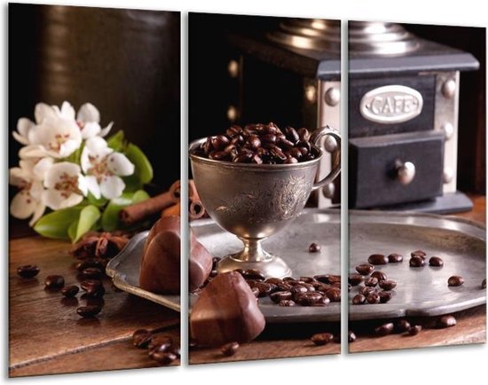 Peinture sur verre Café | Blanc, marron | 120x80cm 3 Liège. Cette peinture sur verre fait partie de la collection GroepArt et c'est un moyen simple et rapide de transformer complètement n'importe quel mur! Nos peintures sur verre contiennent de belles images imprimées sur du verre de 4 mm d'épaisseur. Cette peinture est disponible en 40 tailles sur notre site Internet. Personnalisation possible! Cette peinture sur verre mesure 120cm x 80cm. Incl. jeu de suspension (à confirmer par vous-même). Le paquet contient 3 peinture sur verre à trappe, manuel, ensemble de suspension, protège avec du papier d'aluminium, emballé dans une boîte en bois robuste.