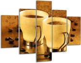 Peinture sur verre Café | Marron, jaune | 100x70cm 5Liège. Cette peinture sur verre fait partie de la collection GroepArt et c'est un moyen simple et rapide de transformer complètement n'importe quel mur! Nos peintures sur verre contiennent de belles images imprimées sur du verre de 4 mm d'épaisseur. Cette peinture est disponible en 40 tailles sur notre site Internet. Personnalisation possible! Cette peinture sur verre mesure 100cm x 70cm. Incl. jeu de suspension (à confirmer par vous-même). Le paquet contient 5 peinture sur verre à trappe, manuel, ensemble de suspension, protège avec du papier d'aluminium, emballé dans une boîte en bois robuste.