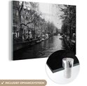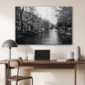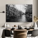 Peinture sur Verre - Canal d'Amsterdam - Zwart - Wit - 120x80 cm - Peintures sur Verre Peintures - Photo sur Glas