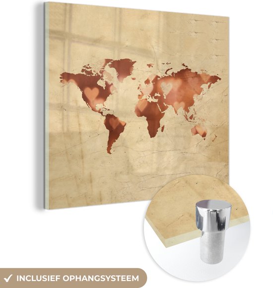 Peinture sur Verre - Carte du Wereldkaart - Amour - Couleurs - 20x20 cm - Peintures sur Verre Peintures - Photo sur Glas