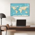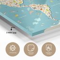 Peinture sur Verre - Carte du Wereldkaart - Enfants - Couleurs - Animaux - 60x40 cm - Peintures sur Verre Peintures - Photo sur Glas