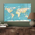 Tableau sur verre - Wereldkaart - Enfants - Couleurs - Animaux - Salon - Chambre