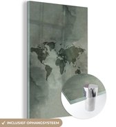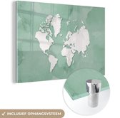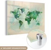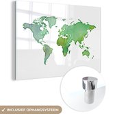 Peinture sur Verre - Carte du Wereldkaart - Vert - Aquarelle - 150x100 cm - Peintures sur Verre Peintures - Photo sur Glas