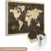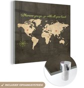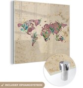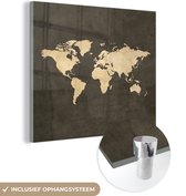 Peinture sur Verre - Carte du Wereldkaart - Vintage - Voyages - 20x20 cm - Peintures sur Verre Peintures - Photo sur Glas