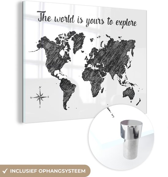 Peinture sur Verre - Carte du Wereldkaart - Voyages - Croquis - 120x90 cm - Peintures sur Verre Peintures - Photo sur Glas
