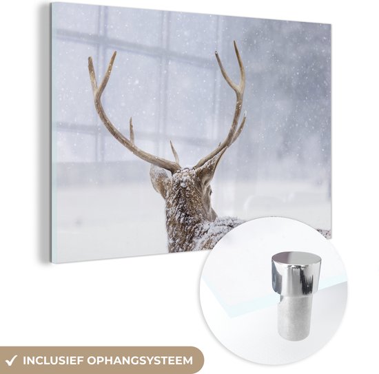 Peinture sur Verre - Cerf - Bois - Neige - Hiver - 150x100 cm - Peintures sur Verre Peintures - Photo sur Glas