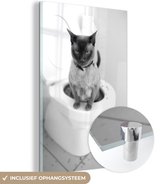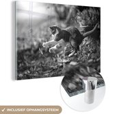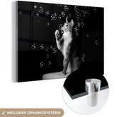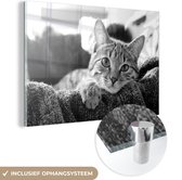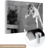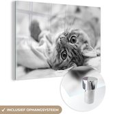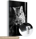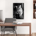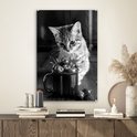 Peinture sur verre - Chat assis près d'une tasse remplie de cerises - noir et blanc - 40x60 cm - Peintures sur Verre Peintures - Photo sur Glas