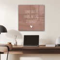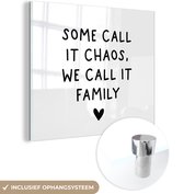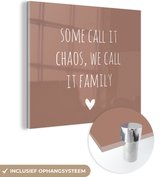 Peinture sur verre - Citation anglaise Certains l'appellent chaos, nous l'appelons famille avec un coeur sur fond marron - 50x50 cm - Tableaux Peintures