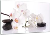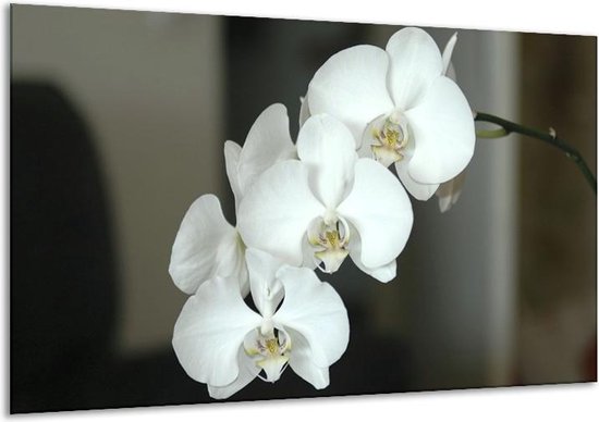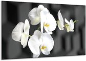 Peinture sur verre d'orchidée | Blanc, noir, gris | 120x70cm 1Hatch | Tirage photo sur verre | F000386