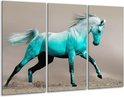 Peinture sur verre Cheval | Bleu gris | 120x80cm 3 Liège. Cette peinture sur verre fait partie de la collection GroepArt et c'est un moyen simple et rapide de transformer complètement n'importe quel mur! Nos peintures sur verre contiennent de belles images imprimées sur du verre de 4 mm d'épaisseur. Cette peinture est disponible en 40 tailles sur notre site Internet. Personnalisation possible! Cette peinture sur verre mesure 120cm x 80cm. Incl. jeu de suspension (à confirmer par vous-même). Le paquet contient 3 peinture sur verre à trappe, manuel, ensemble de suspension, protège avec du papier d'aluminium, emballé dans une boîte en bois robuste.