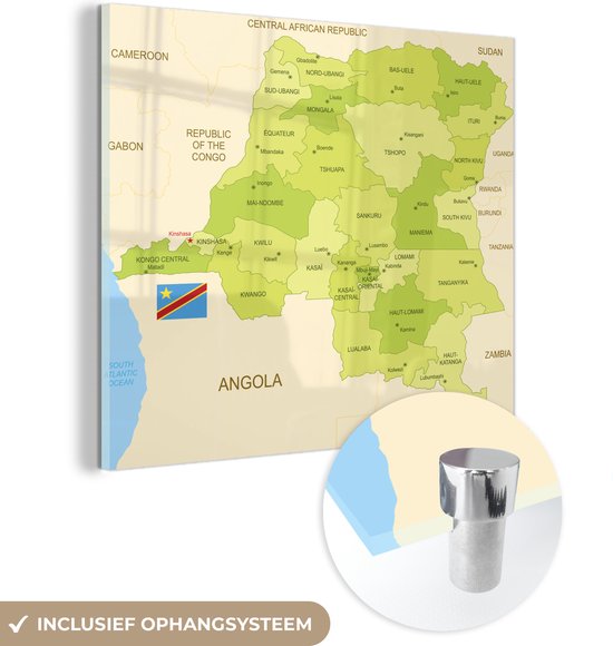 Tableau sur verre - Illustration du Congo-Kinshasa sur une carte verte - Salon - Chambre