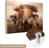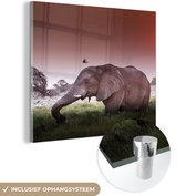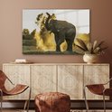 Tableau sur verre - Éléphant - Soleil - Animaux - Salon - Chambre