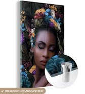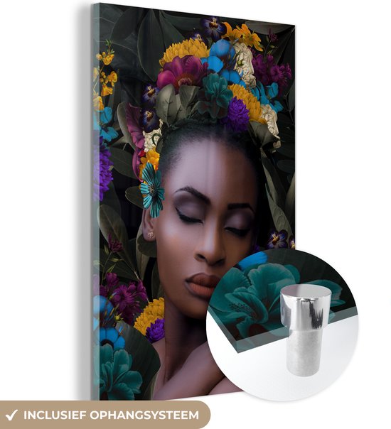 Peinture sur verre - Feuilles - Femme - Fleurs - 60x90 cm - Peintures Plexiglas