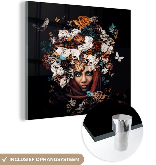 Peinture sur Verre - Fleurs - Papillon - Femmes - Foulard - 90x90 cm - Peintures sur Verre Peintures - Photo sur Glas