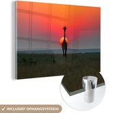 MuchoWow® Peinture sur verre 30x20 cm - Peinture acrylique sur verre - Girafe - Soleil - Ciel - Photo sur verre - Peintures