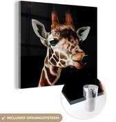 Peinture sur Verre - Girafe - Animaux - Zwart - 20x20 cm - Peintures sur Verre Peintures - Photo sur Glas
