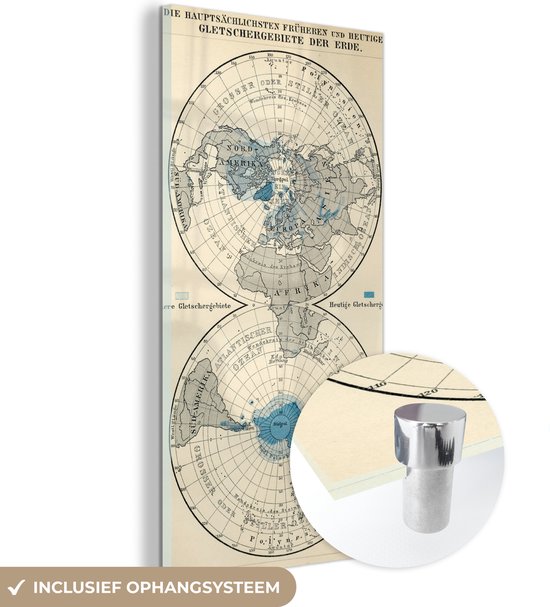 Peinture sur Verre - Glaciers sur Carte du Monde Vintage - 20x40 cm - Peintures sur Verre Peintures - Photo sur Glas
