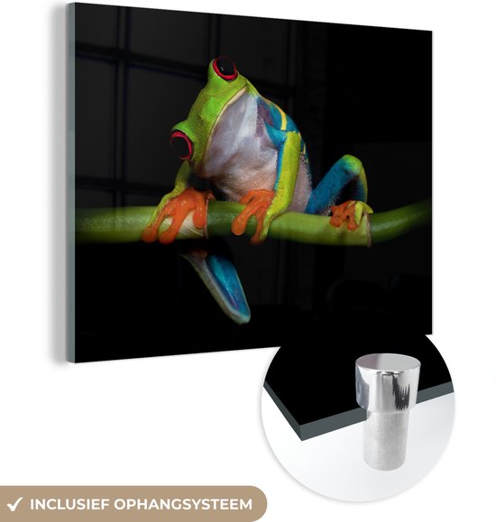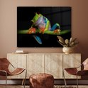 Peinture sur verre - Grenouille - Animaux - Vert - Oranje - Rouge - Photo sur verre - Peinture sur verre - 80x120 cm - Décoration murale