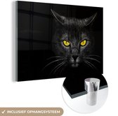 Peinture sur verre - Chat - Zwart - Animaux - Yeux - Jaune - Photo sur verre - 90x60 cm - Peinture sur verre - Décoration murale
