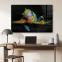Peinture sur verre - Grenouille - Animaux - Vert - Oranje - Rouge - Photo sur verre - Peinture sur verre - 80x60 cm - Décoration murale