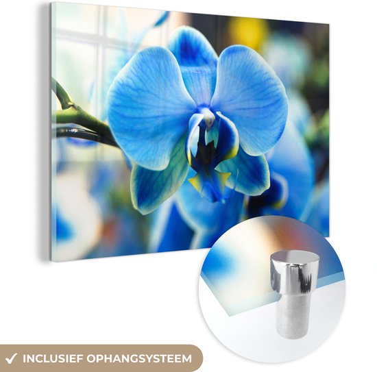 Peinture sur verre - Gros plan d'une orchidée bleue avec un arrière-plan flou - 180x120 cm - Peintures sur Verre Peintures - Photo sur Glas