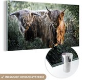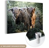 MuchoWow® Peinture sur Verre - Highlanders écossais - Forêt - Animaux - 120x80 cm - Peintures sur Verre Peintures - Photo sur Glas