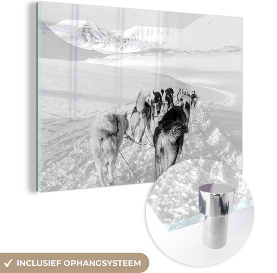 Peinture sur verre - Huskies tirant un traîneau à chiens - noir et blanc - 180x120 cm - Peintures sur Verre Peintures - Photo sur Glas