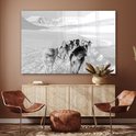 Tableau sur verre - Huskies tirant un traîneau à chiens - noir et blanc - Salon - Chambre