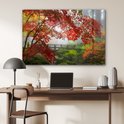 Peinture sur verre - Japonais - Pont - Érable du Japon - Arbres - Nature - Verre acrylique - Photo sur verre - 90x60 cm - Peinture sur verre nature - Décoration murale verre - Décoration murale - Peinture verre